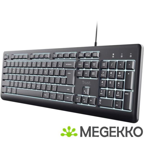 De Trust Primo is een bedraad full-size toetsenbord met stille, low-profile toetsen voor comfortabel en rustig typen. Dankzij de LED-verlichte toetsen werk je moeiteloos door in elke lichtsituatie. Het morsbestendige ontwerp, verstelbare voetjes en de 180 cm USB-kabel zorgen voor extra comfort en betrouwbaarheid tijdens het werken.