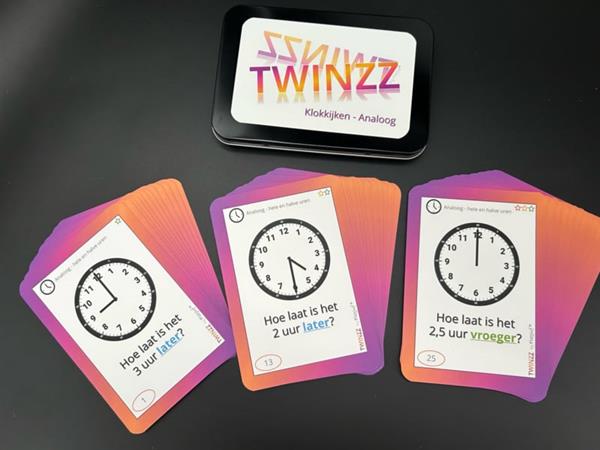 Zie hier het vrolijke tweelingspel: Twinzz! Speel met zijn tweeën dit educatieve spel! Ga tegenover elkaar zitten en lees beiden aan jouw kant de Twinzzcard de opdracht. Denk na over het antwoord en controleer bij je Twinzz of je hem goed had!